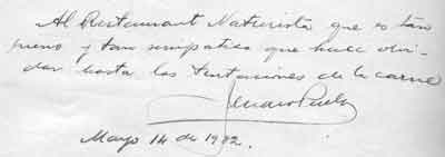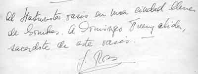 | Al Naturista oasis en una ciudad llena de sombras. A Domingo Fuenzalida, sacerdote de este oasis. |  | ||