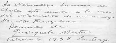 | A Domingo Fuenzalida, en recuerdo de un almuerzo cordial y una conversación muy vitamínica, con todo mi afecto y amistad. Lenka Franulic |  | ||